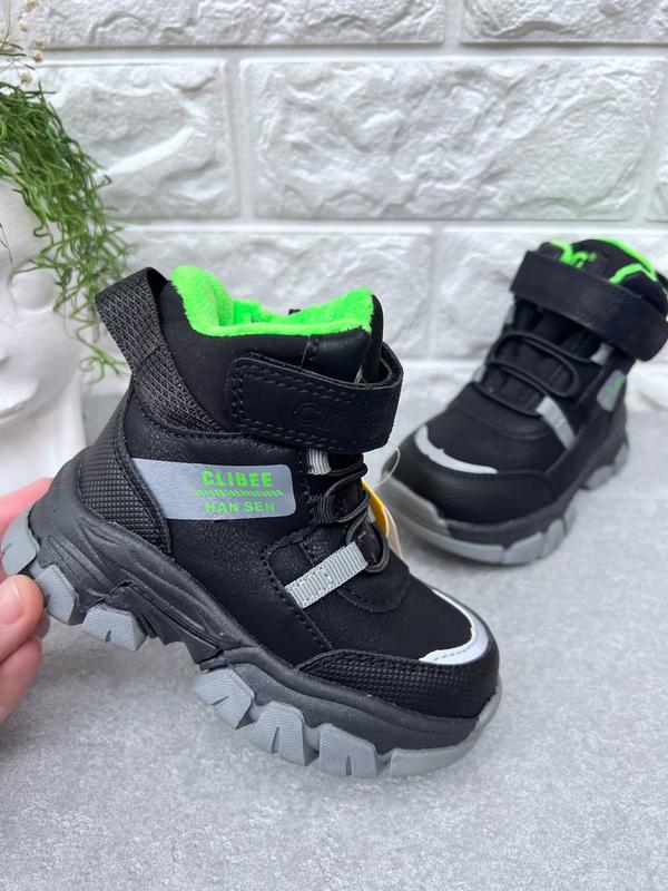 К.1331 🧒Стильные сапожки Clibee черно-зеленого цвета, верх высококачественная эко-кожа, в середине 60% натуральная овчина, регулируются липучкой, шнурками-резинками и замочком. 22р стелька 14,8см 23р стелька 15,3см 25р стелька 16,7см 26р стелька 17,3см