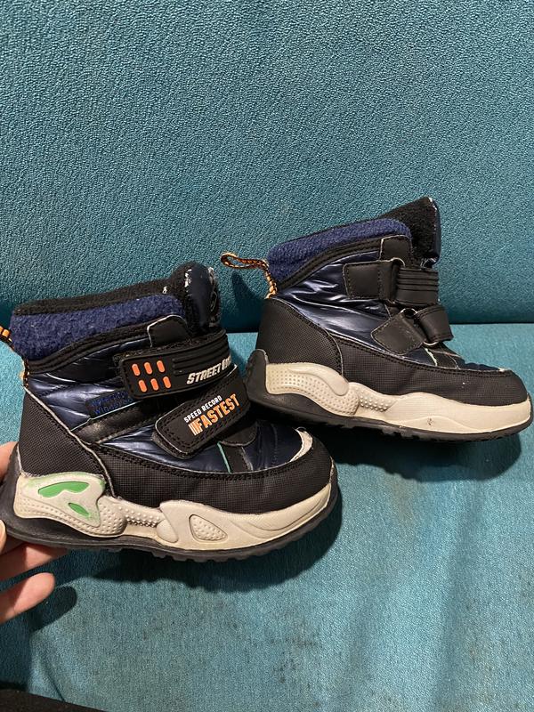 Размер 25. 16см стулька внутри от края до края. Состояние нормальное, подошва целая, непромокаемые. Прорызинные, ножки немного взбиты (на фото видны). Очень теплые, внутри овчинка. Из нюансов это то, что не слишком прочно липнет липучка не так как когда были новые. При желании можно пережить лисичку. В цене этот нюанс учитывал. Без торгу. Новые стоят 1000 грн.