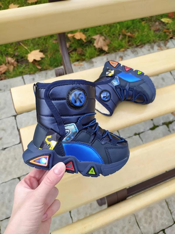 код 793 Дутики для мальчиков. Верх-эко кожа + плащевка, не промокают. Сбоку на липучке. Внутри очень теплый густой мех. 24р-15 см 25р-15.5 см