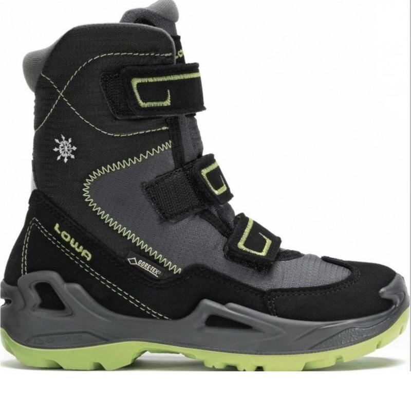 Теплі дитячі чоботи 🥾 виготовлені з комфортного матеріалу комбінована шкіра з текстильними вставками. Швидко одягається та знімається завдяки застібці-липучці, це взуття є чудовим супутником для молодих ніжок у холодні дні. Тепла внутрішня підкладка та м'який стрижень забезпечують зручну посадку. Водовідштовхувальна мембрана GORE-TEX робить взуття стійким до погодних умов. Міцна підошва забезпечує зчеплення на слизькій поверхні. Зверніть увагу, що розмір 30 представлений у чорно-світло-сірому кольорі. Lowa Milo GTX BLACK/LIMONE (4052471393835) в дитячому взутті для хлопчиків черевики на підкладці в Schuh Sommer Роз.30 по устілці 19 смужки