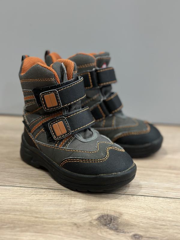 Ботинки детские, подойдут на демисезон и зиму; если ребенок ходит, ножки всегда теплые. Легко одеваются и фиксируются на ноге благодаря липучкам; пятка твердая. Размер 22. Состояние хорошее, есть незначительные потертости на пятке, но их незаметно даже с высоты детского роста.