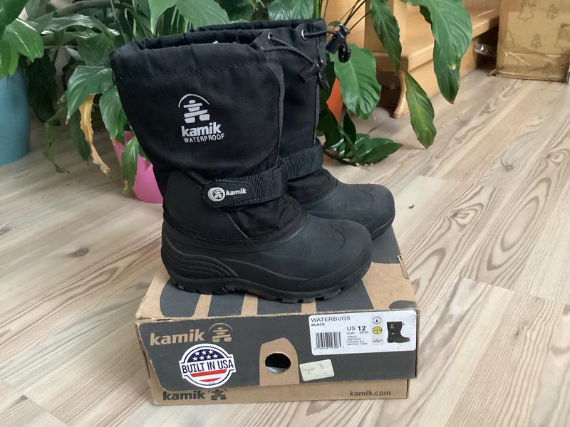 Продам класні термо чобітки До -40 Оригінал , замовляла з Америки Стан ідеальний, недолік-треба прошити захист з внутрішнього боку чобітка, на фото показала По устілці чобітка 18см 1 дитина носила 1 сезон, в купі ще з 3-ма парами взуття.