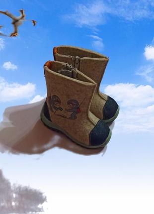 Очень красивые удобные валянки для мальчика. Размер 22,24 после одного ребенка. Если интересно присылаю дополнительно фото и замеры. На подошве немного есть желтизна, но при носке невидимо потому и снижена цена.