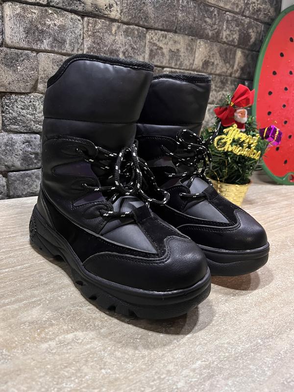 Зимние сапожки-дутики спортивного плана на меху для мальчика. Аккуратная моделька, на молнии сбоку. Внутри шерстяной мех. Толстая зимняя подошва защищает от холода с земли, и не дает скользить по зимней скользкой дороге. Подошва пена, легкие. Подойдет на ножку средней стандартной ширины. 28р - 18 см