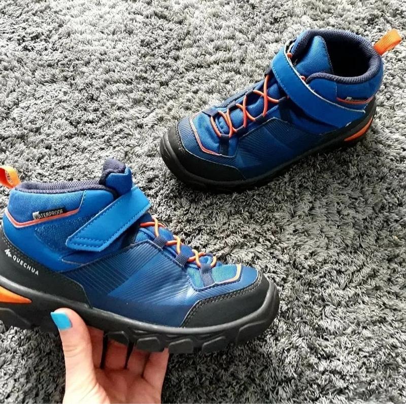 Очень классные, практичные и удобные сапоги Quechua на липучках, что очень удобно. Есть технология Waterproof. Водонепроницаемые, легкие. Стан идеален, в реальности они красивее, нож вышли на фото. Размер указан 27, стелька 18 см. Подойдут как на холодную осень, так и на зиму, если не мороз. Легко мыть.