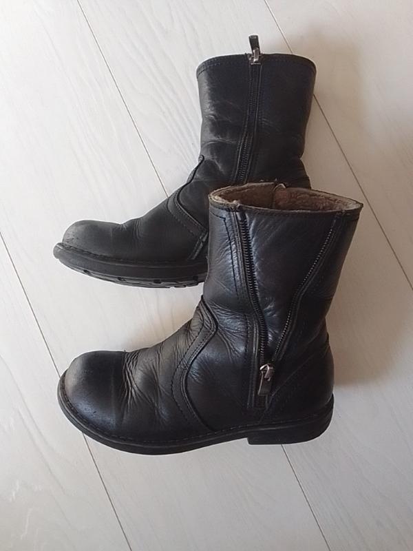 Шкіряні чобітки на хлопчика розмір - 32 Довжина устілки - 20.5 см. З дефектів : є царапіни (на фото) не промокають