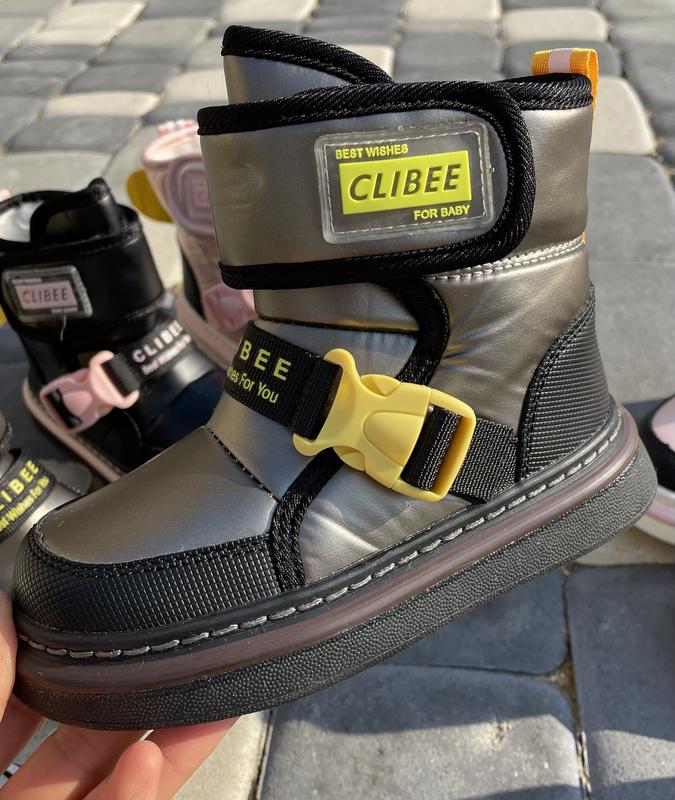 Чрезвычайно красивая, стильная и удобная модель дутиков от ТМ Clibee Верх плащевка Усиленный носик и пятка Утепленные натуральным мехом Есть липучка 27-17,2 см 28-18 см 29-18,6 см 30-19,2 см 31-20 см 32-20,7 см стелька