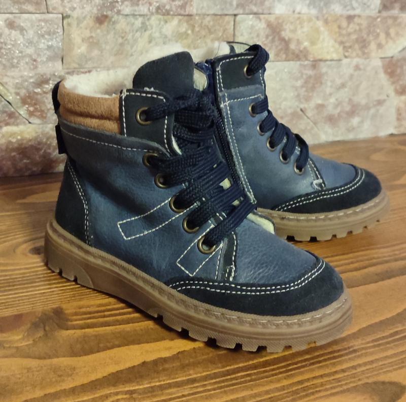 Тепленькие качественные ботиночки для мальчика. Сверху кожа и замш. Внутри овчинка. В очень твердом состоянии