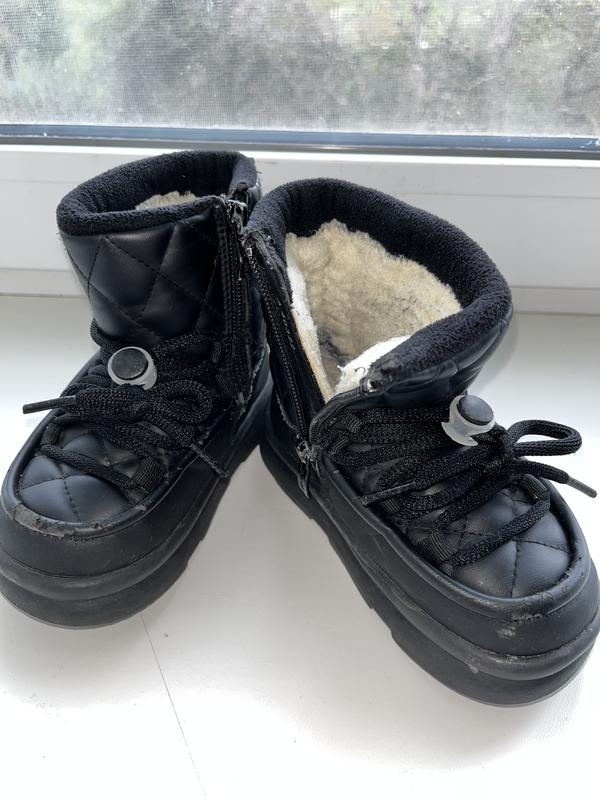 Мунботы, унисекс, черного цвета, 26 размер, 16 см стелька, есть дефект. Видимо на первом фото