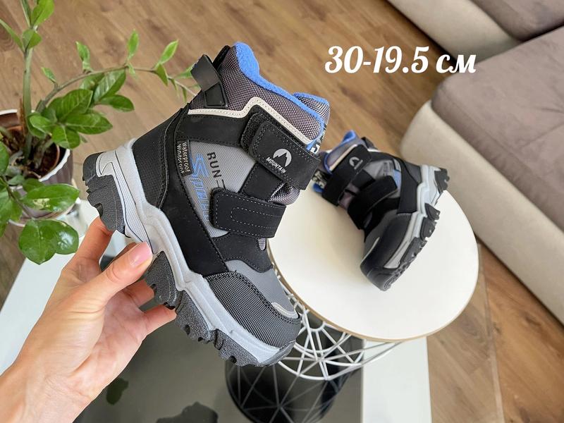 Качественные снобутсы для парней от фирмы ТоМ М Снаружи ткань waterproof, которая не пропускает влагу и холод Носочек усиленный и прорезиненный Имеют светоотражающие элементы Внутри густой теплый мех 75% натур Фиксация липучками Прочная протекторная подошва 30 размер 19.5 см