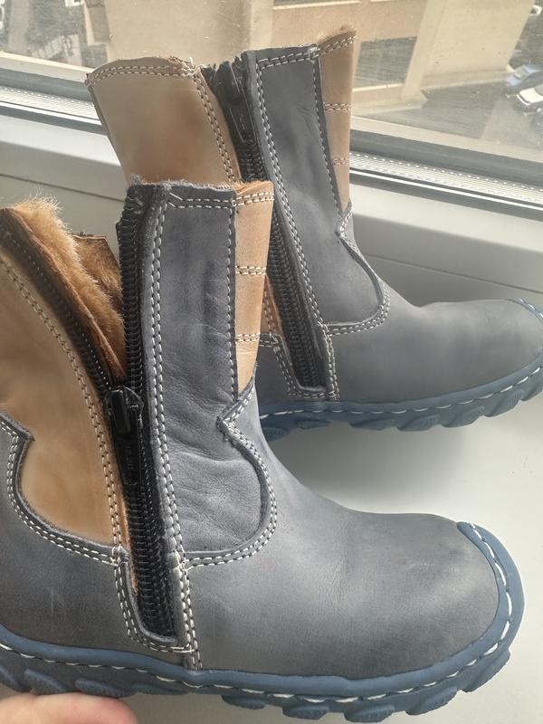Нові маленькі чобітки,теплі,прошиті,натуральна шкіра,розмір 24, не встигли поносити, тільки приміряли, дуже гарні і якісні як на хлопчика так і дівчаткам можна:) пишіть