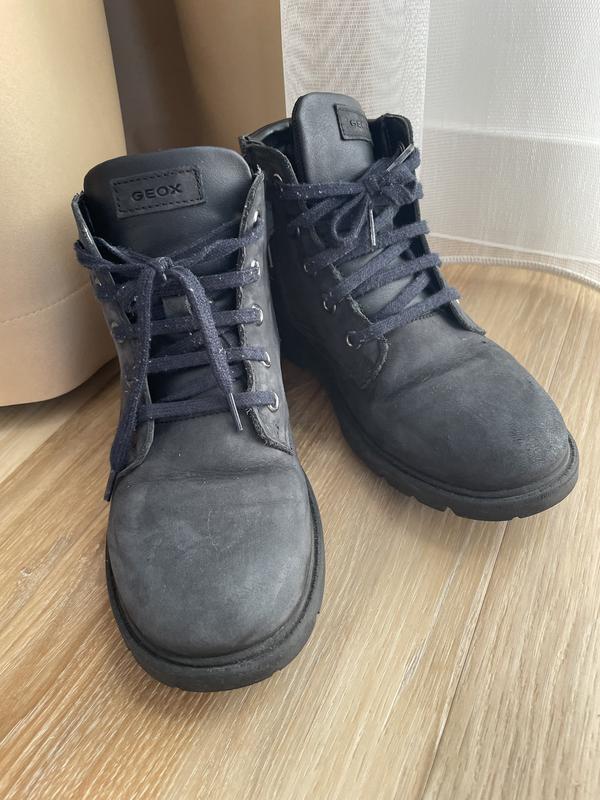 Сапоги детские Geox демисезон, унисекс, 33 размер. Стелька - 21.5 см. Материал - нубук Цвет - черный, темно-серый.
