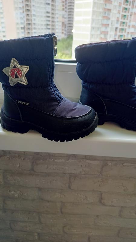 Отличные тепленькие сапожки на зиму для ваших рисучков. Реально теплые. Удобно надевать благодаря молнии. Мех внутри не взбитый. Носилы мало, ножка быстро выросла. Из дефектов немного коцнулы носочек, не слишком бросается в глаза, на фото максимально увеличила.Размер 27-17 см стелька.