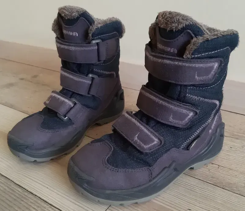 Сапоги известного бренда LOWA в отличном состоянии. Чрезвычайно теплая, практичная, удобная обувь. Материал: экокожа, плотный специальный влагостойкий текстиль. Внутри утеплены мехом. На мембране Gore-tex!!! Защелка: три липучки, которые регулируются. Сзади светоотражающие элементы. Рифленая, не скользящая подошва. Стелька вынимается-19 см. Размер 30. Полностью соответствуют фото!