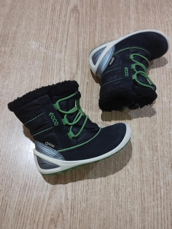 Сапожки Ecco Biom с мембраной Gore-Tex темно серые (практически как черные), натуральный замш + др. материал, внутри набивной искусственный мех, легенькие на ножках, Индонезия. Демисезон - еврозима. Дышащие и непромокаемые. Размер указан евро 22, длина стельки 14,2 см, ширина 5,5 см. В отличном состоянии, все целое, крепкое, просто небольшое б/у, при желании можно чуть освежить цвет. Смотрите пожалуйста внимательно фото, их делали для вас и они являются частью описания товара. Смотрите и другие мои объявления, есть еще много интересного для всей семьи! ----------------------------------------------------------------------------- Доставка (подробнее о способах доставки смотрите в разделе "Обо мне") 4242