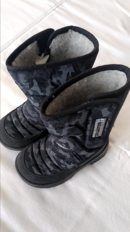 Детские зимние сапоги финского бренда KUOMA для мальчика размер 24, цвет серый с черным. Сапоги очень теплые, внутри овечья шерсть, не промокают, верх - кожа, текстиль с водо - грязеотталкивающей пропиткой, широкая и анатомическая рукоять, поэтому их легко надевать. Стан идеален, покупали в Интертопе, носили 1 сезон.