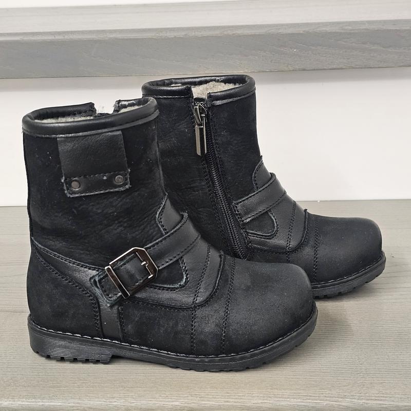 Зимові чобітки від українського виробника, фабричне та якісне взуття з натуральної шкіри, всередині натуральна овчинка, збоку замок, міцна ортопедична підошва , легкі та зручні. Розміри та довжина по устілці: 24-14см, 25-14.5, 27-15.5