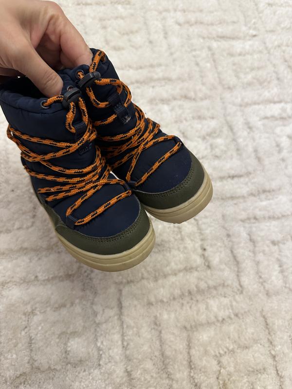 Зимове взуття - дутики від бренду Next. Розмір 26.5. Чудове взуття, оптимальної висоти. Легко взуваються, мають гарний вид, не промокають. Ідеально на вологу зиму. Є нюанс, на фото видно. З внутрішньої сторони ніжки (коли терлись нога об ногу) зчухались трошки шнурочки. На функціонал ніяк не впливає.