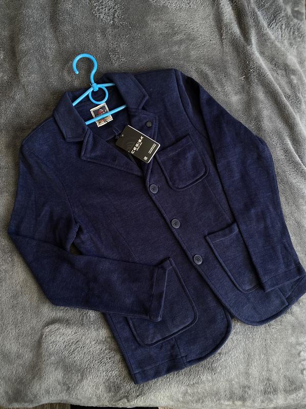 Пиджак на мальчика, мягкий. Турецкий бренд «Cegisa», хорошее качество, синий цвет. 152 рост, замеры указаны на одном из фото.