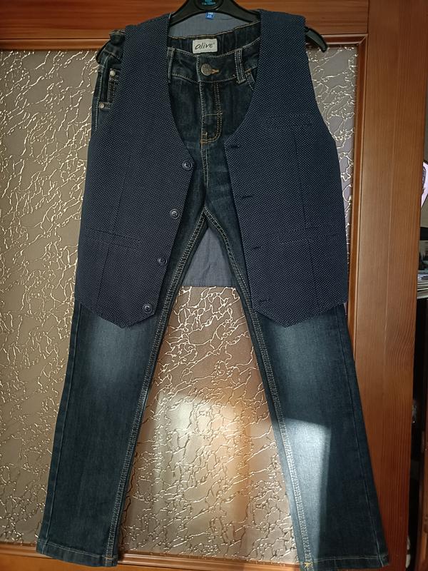 Продам комплект одежды в школу на рост 140: джинсы и жилетка. Все в идеальном состоянии. Джинсы на стяжке в поясе. В подарок трикотажный лонгслив h&m на соответствующий рост замеры джинсов Длина общая 84 см, Шаговый шов 63 см, Талия 32см, есть утяжка Стегна 37 см. Жилетка Длина по спинке 42 ПОГ 37