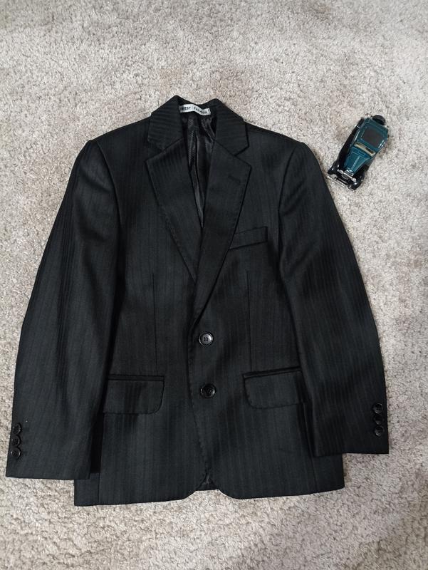 Чорний з незначною полоскою 122-ріст. підкладка-100%viscose Довжина-53. 45% wool Ширина-35. 35% viscose Рукав-44. 20% polyester Плечі-31