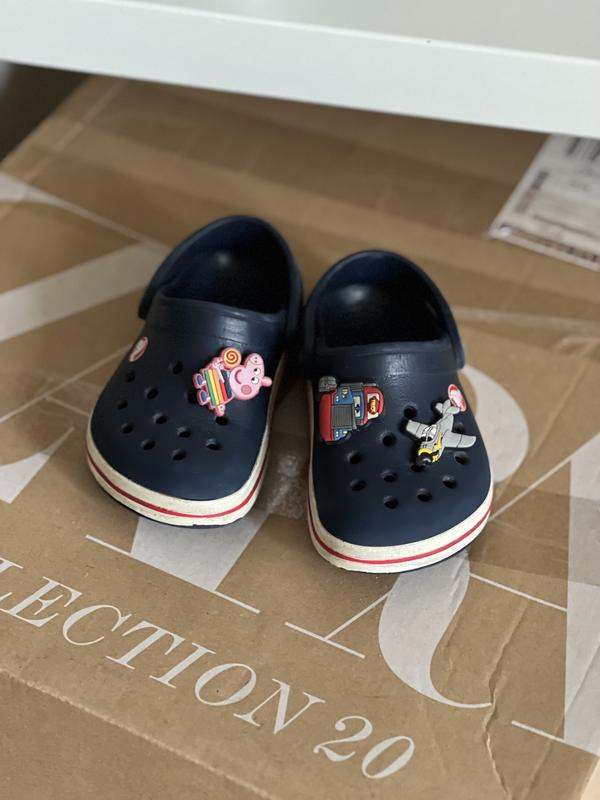 Crocs оригиналинальные, немного есть повреждения. В комплектетягиваю с джибитсы 3 штуки, также вы сможете их снять. Стелька 14.5 см