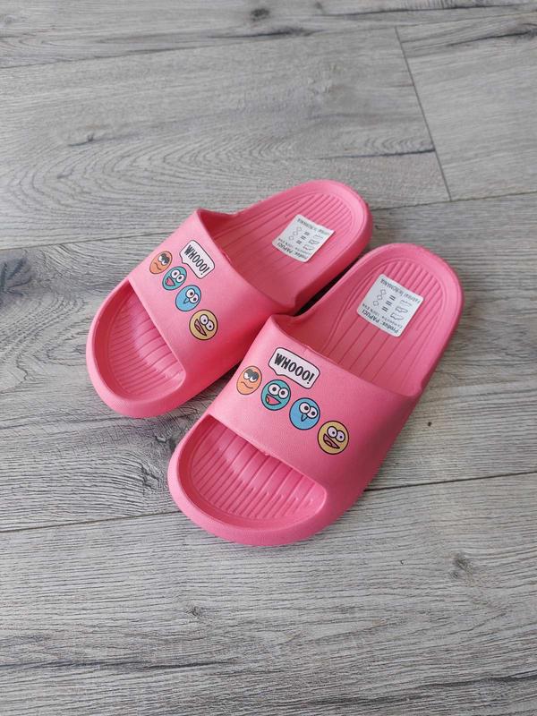 Шлепанцы детские пенные. На верху есть изображение смайликов.