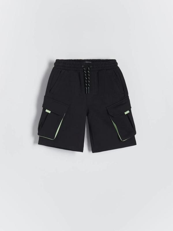 Бавовняні шорти карго відомого польського бренду reserved Розмір 134 (8 років) довжина - 44см, шаговий шов - 21см, ПОТ - 30см, посадка спереді - 24см, посадка ззаді - 31см -пояс на резинці зі шнурком для регулювання -дві відкриті кишені спереду -накладні кишені з боків склад тканини: 88% БАВОВНА, 12% ПОЛІЕСТЕР