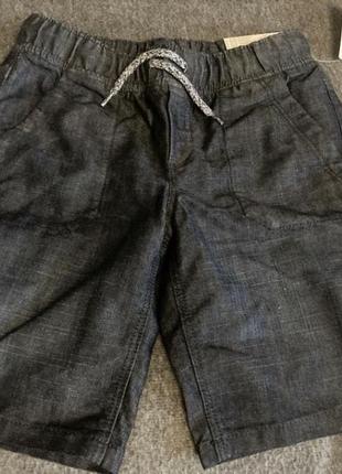 Качественные шорты известного бренда. Размер указан 140. Пояс на резинке+ шнурок, есть боковые карманы. Длина шорт 43см Ширина в бедрах полуобхват 39см, не тянутся.