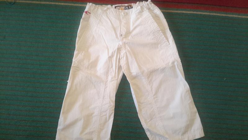 Шорты, белого цвета, ткань похожа на плащевку. Состав на фото. В поясе резинка можно утягивать по талии. На все вопросы отвечу, спрашивайте. Пот 31, Поб 43 44, Длинна по боковому шву 57 Посадка в переди 20, Сзади 28. 5 карманов.