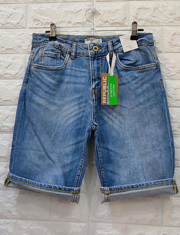 Шорты джинсовые. можно носить с подворотом и без. Стретчевые Классный модный цвет с потертостями Внутри на поясе есть ризиночки, регулирующие объем Размер 146 Цена 450 грн