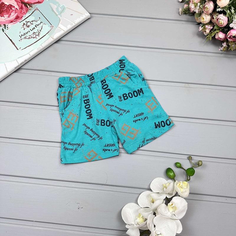 🌸Шорты с напылениями на мальчика. Есть кармашки. Малюнок-принт, резиночка гарно тягнеться. Тканина двунитка. Производитель Турция. 📐Замеры: 92 - длин. 25/полуобх. 28 98 - длин. 26/полуобх. 29 104 - длин. 27/полуобх.30 110 - длин. 30/полуобх. 31 116 - длин. 31/полуобх. 31 122 - длин. 33/полуобх. 32 128 - длин. 34/полуобх. 33 134 - длин. 35/полуобх. 34 💰Цена 180 грн