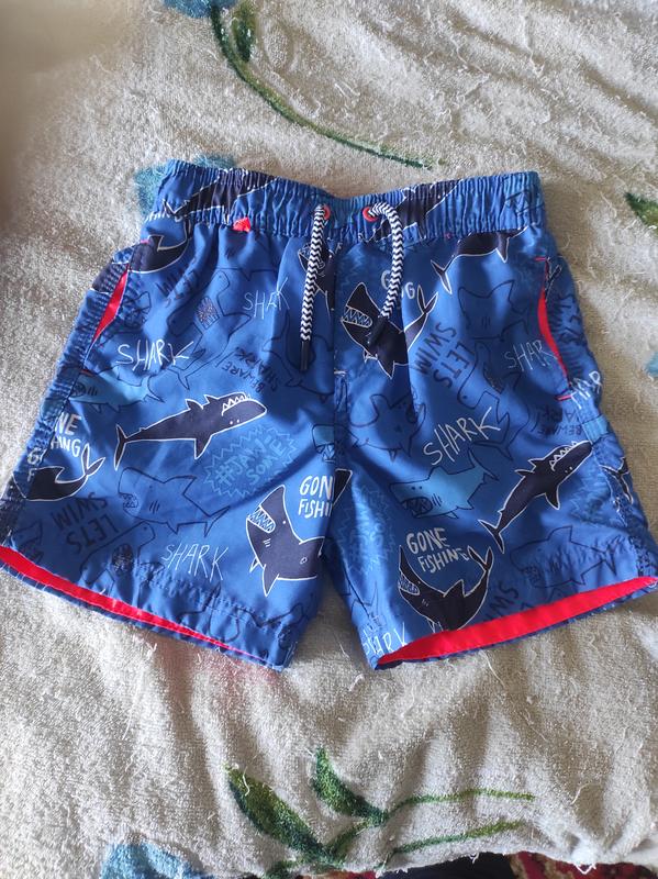 синие шортики с акулами,есть 2 кармана. красиво садятся Длина 29см ПОТ 26см, красиво тянется,на резинке ПОБ 33см, не тянется
