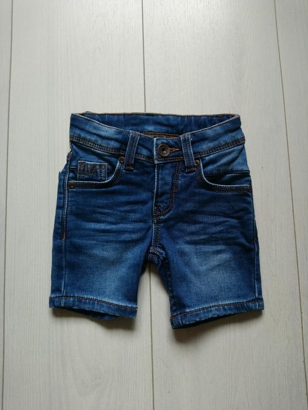 Джинсовые шорты новые сток Размер 92 Пояс стягивается резинкой на пуговицах Материал 74% коттон, 22% полиэстр, 2% вискоза и 2 эластан Длина 25 см ПОП 21 см и тянется до 24 см и стягивается резинкой на пуговицах ПОБ 26 см