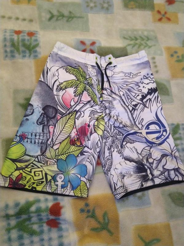 Очень красивые фирменные орегинальные шорты, очень красиво выглядят, ткань тонкая легкая приемная на ощупь, длина -52см, полу обхват талии -38см, полу обхват бедер -60см, внимательно сверьте свои размеры.