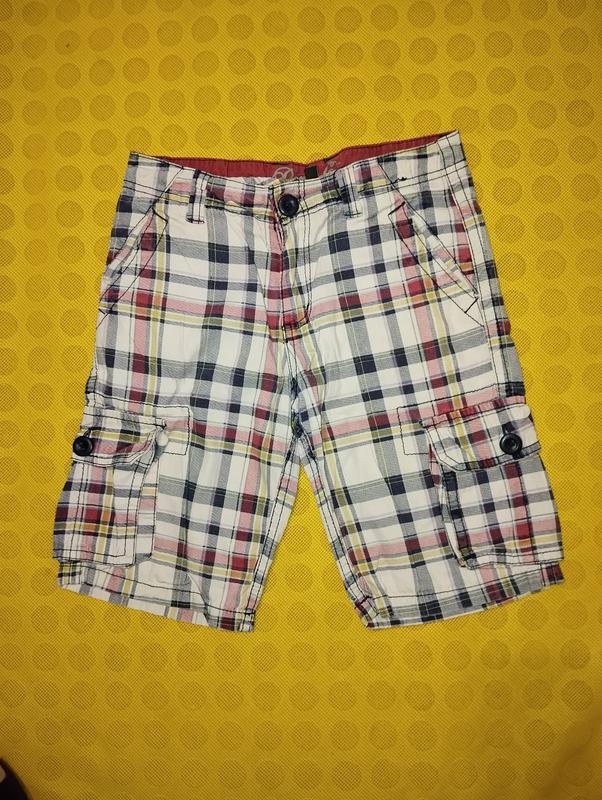 Котонові шорти DENIM на хлопчика 9-10р (140см). Заміри: ПОТ 33см, ПОБ 41см, довжина по кроковому шву 20.5см, по боковому 41.5см. Стан добрий, але на ззаді на клапанах відсутні гудзики.