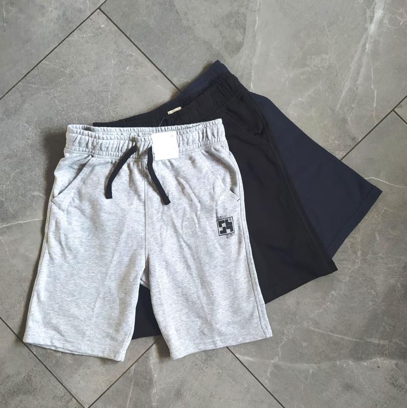 Шорти дитячі F&F Шорти на хлопчика F&F на 11-12 років три штуки в комплекті - сірі, чорні, темно-сині талія 34 см, ширина у стегнах 43 см, довжина по боку 48 см, шаг 33 см, ширина штанини внизу 24 см ціна за комплект 650 грн.