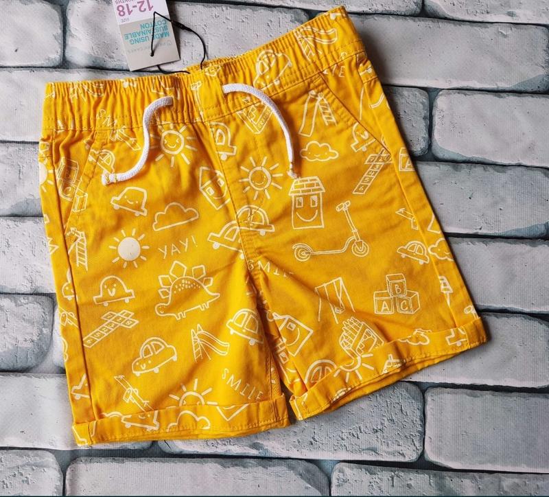 В НАЯВНОСТІ Красивые шортики для мальчика Приятная на ощупь ткань, легкая Есть карманы, шнурок в поясе -для декора Фирма-Primark Состав-100% - коттон, Код товару- 0397 Размер-86 (12-18 м), 98 (24-36м), см ЗАМІРИ 86 см-довж-26, бедра-30, резинка-24 98 см- довж-30, бедра-32, резинка-25