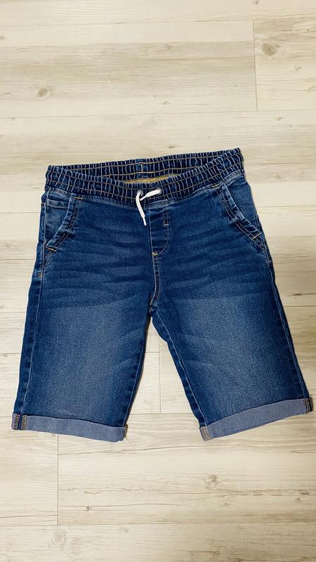 Джинсовые шорты в отличном состоянии, как новые, по бирке на рост 146-152см. Длина 47см, шаговая длина 25,5см, высота посадки 31,5см, пояс 36смх2 + шнурок и резинка, бедра 44смх2. Гарно тягнуться.
