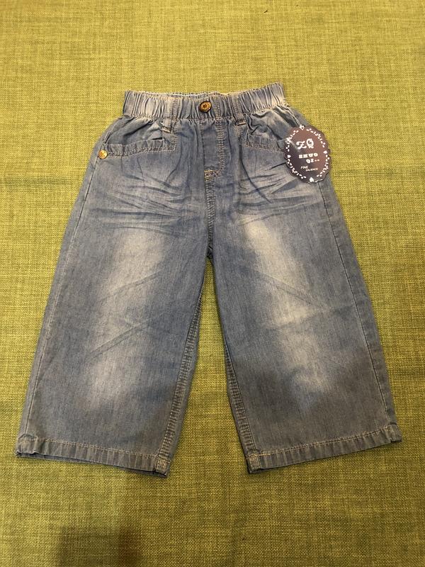 Бриджи джинсовые на мальчика Замеры: длина 49 см; обхват пояса 47 см; полуобхват бедер 35 см; шаговый шов вместе с поясом 47 см Тканина: джинс Цвет: синий