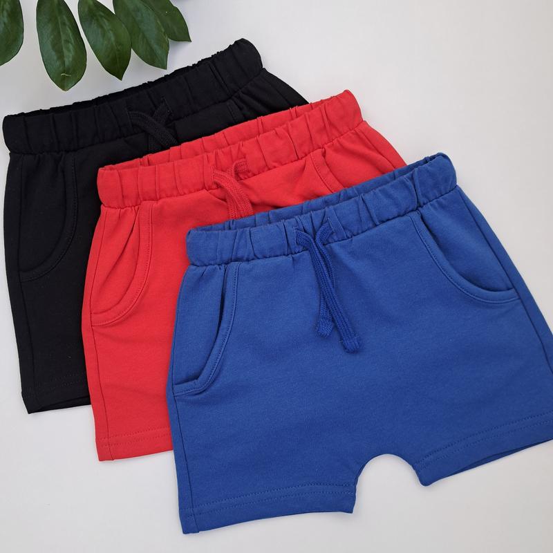 Шорты однотонные котоновые для мальчика. Два кармашка, пояс на резинке дополнительно регулируется шнуровкой. Цвет: красный, синий 100% бавовна. Размер 80-86, 86-92. Для комплекта можно подобрать футболочку в тон.