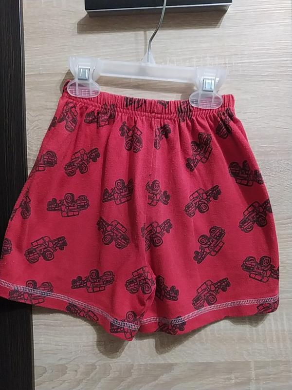 Шорты. Красные в черную машину. Длина -27см. Длина наружный шов-28 см. Длина внутреннего шов- 7 см. Ширина в поясе-22 см.