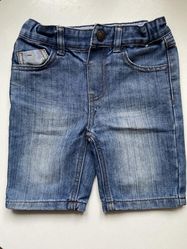 Джинсовые шорты для мальчика. Застежка кнопка. По поясу есть регуляторы ширины и резинка по спинке.