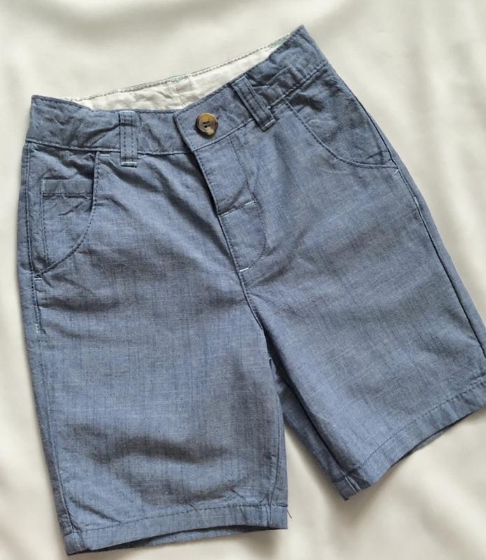 Шорти з тонкої щільної тканини ( 100% бавовна), в новому стані, без паперових бірочок. В поясі утяжка. Довжина 35 см і підкочуються, Нот. 25 см, Нос. 33 см.