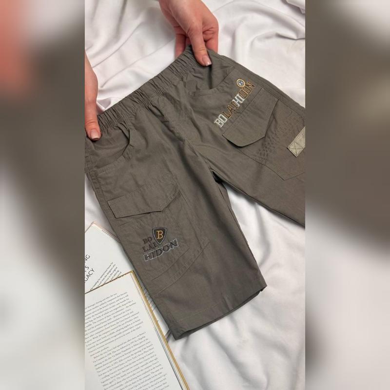 шорты детские тканина котон, не тягнеться цвет- как на последних снимках, светлый хаки замеры на фото