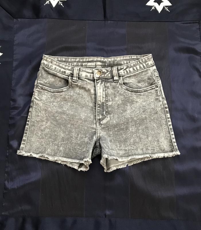 Светло-серые шорты стрейч бренда H&M в хорошем состоянии. ПОТ - 34см, посадка - 27/26см соответственно.
