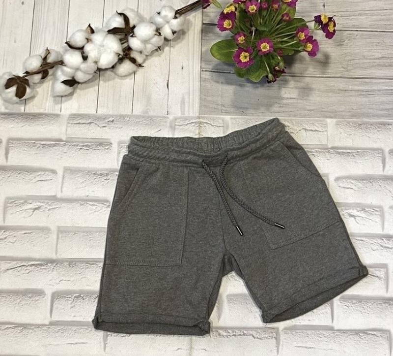 Стильні шорти для хлопчика Дуже легенькі та приємні на дотик, мають зручну резинку на поясі.сбоку є кишені Розмір 8/10 років Зріст 134/140 Пояс 29 см,тягнеться Поб 39 см.