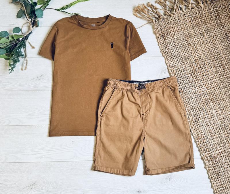 🌱 набір на 11 р ціна -350г Футболка Next д-58 см ширина-42 см Шорти д-41 см пояс -34 см
