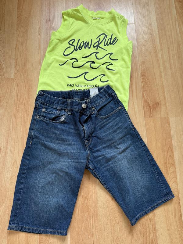 Шорти на хлопчика 9-10 років. Мають бокові утяжки. Майка в подарунок.