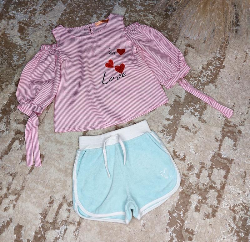 Набор из блузы и шорт на девочку 3-4 лет. Новые. Блуза: Плечі 27 см. ПОГ 32 см. Довжина 40/42 см. Шорти : ПОП 22 см. ПОС 33 см. Довжина 25 см. Цена 325 грн. #viktoriya_bendova_tkachuk